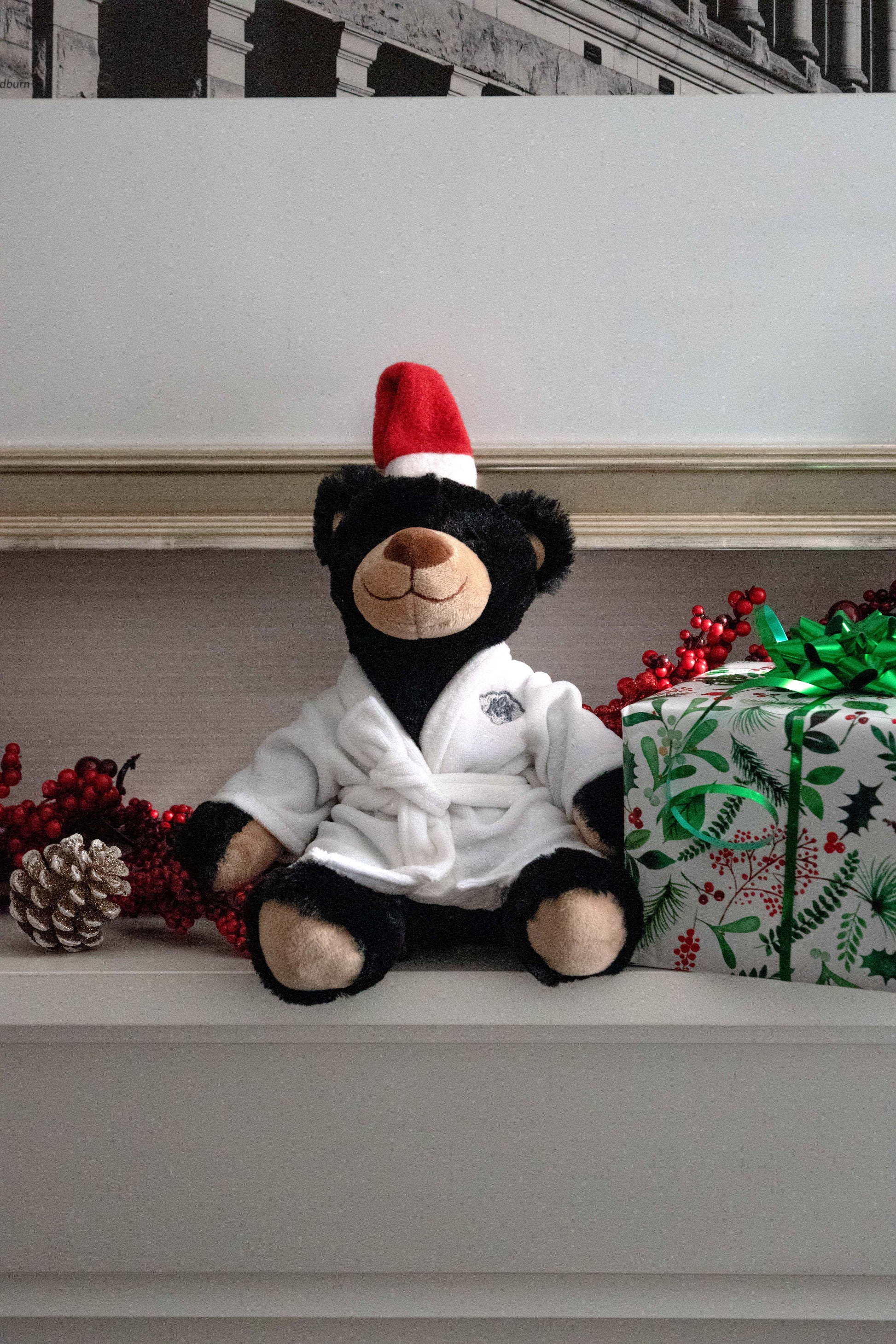 Max the Magnolia Bear comes wrapped in a Magnolia bathrobe, perfect for snuggling and gift giving!